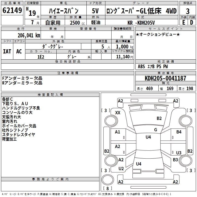 Год выпуска2007 Пробег 206 000 км КузовKDH205V Комплектация LONG SUPER GL 4WD