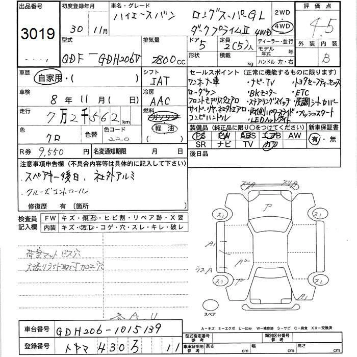 73 000 км КузовGDH206V Комплектация4WD LONG SUPER GL DARK PRIME 2