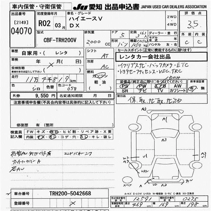 Статус выставлен на аукцион Лот 4070 Аукцион JU Aichi Дата аукциона 12.03.2026