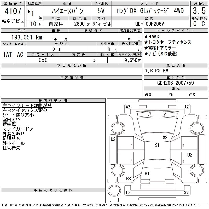 Год выпуска2019 Пробег 193 000 км КузовGDH206V Комплектация LONG DX GL PACKAGE 4WD