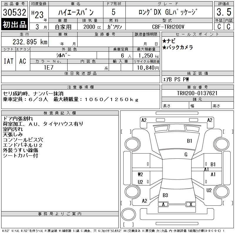 TOYOTA HIACE VAN 2011 г., лот № 30532