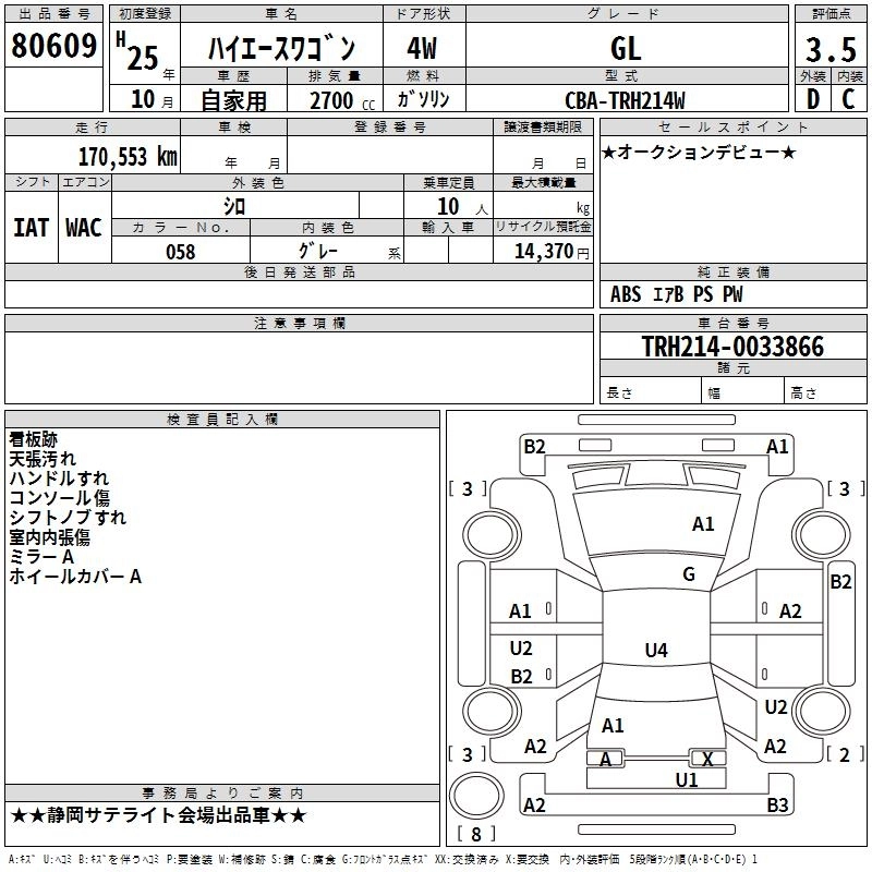 TOYOTA HIACE WAGON 2013 г., лот № 80609