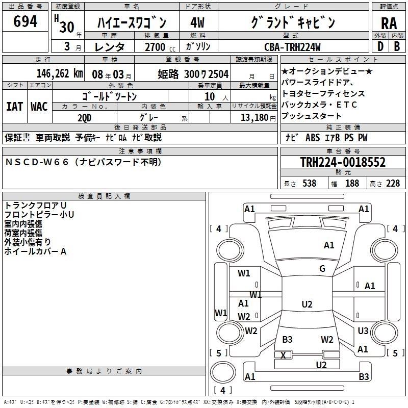 TOYOTA HIACE WAGON 2018 г., лот № 694