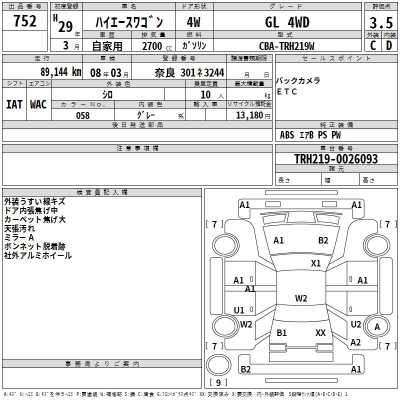 TOYOTA HIACE WAGON 2017 г., лот № 752