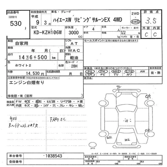 TOYOTA HIACE WAGON 1997 г., лот № 530