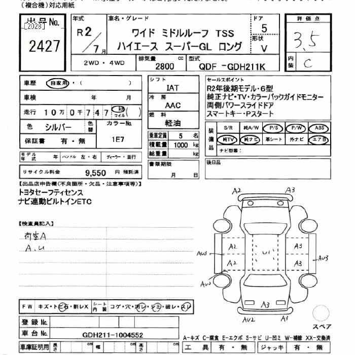 Год выпуска2020 Пробег 100 000 км КузовGDH211K Комплектация SUPER GL LONG WIDE MIDDLE-ROOF TSS