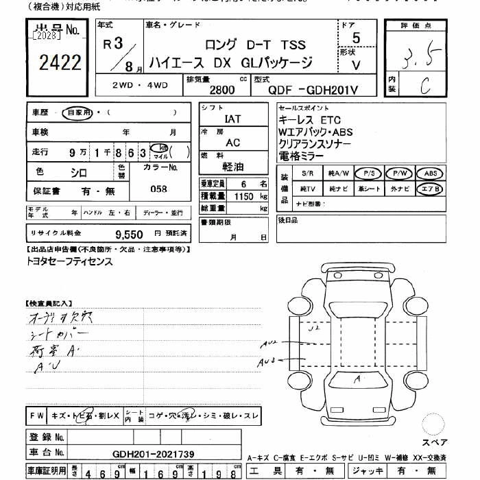 Год выпуска2021 Пробег 91 000 км КузовGDH201V КомплектацияDX GL PACKAGE LONG D-T TSS
