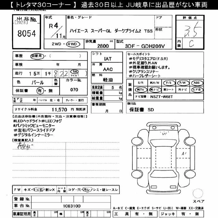 Статус выставлен на аукцион Лот 8054 Аукцион JU Gifu Дата аукциона 24.01.2026