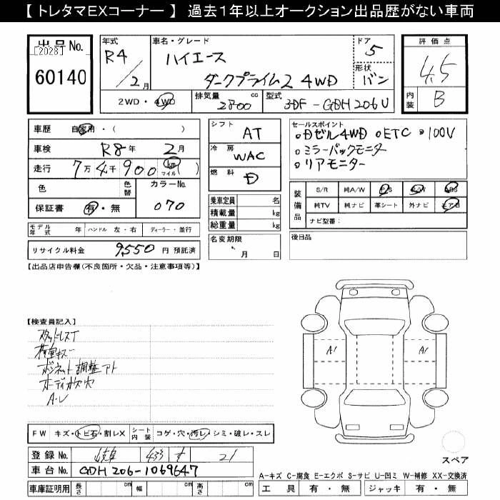 TOYOTA HIACE 2022 г., лот № 60140