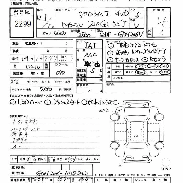 Год выпуска2019 Пробег 141 000 км КузовGDH206V Комплектация4WD SUPER GL LONG DARK PRIME 2