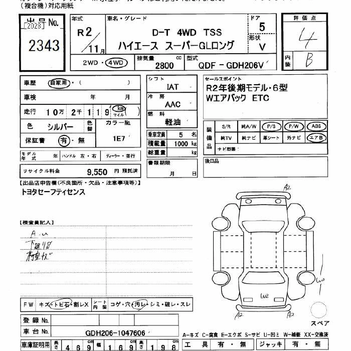 Год выпуска2020 Пробег 102 000 км КузовGDH206V Комплектация4WD SUPER GL LONG D-T TSS