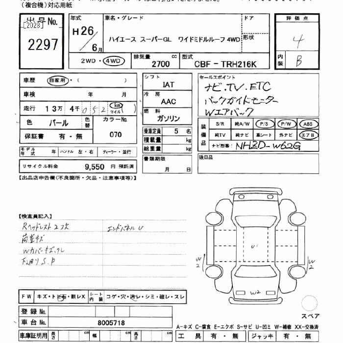 Год выпуска2014 Пробег 134 000 км КузовTRH216K Комплектация4WD SUPER GL WIDE MIDDLE-ROOF