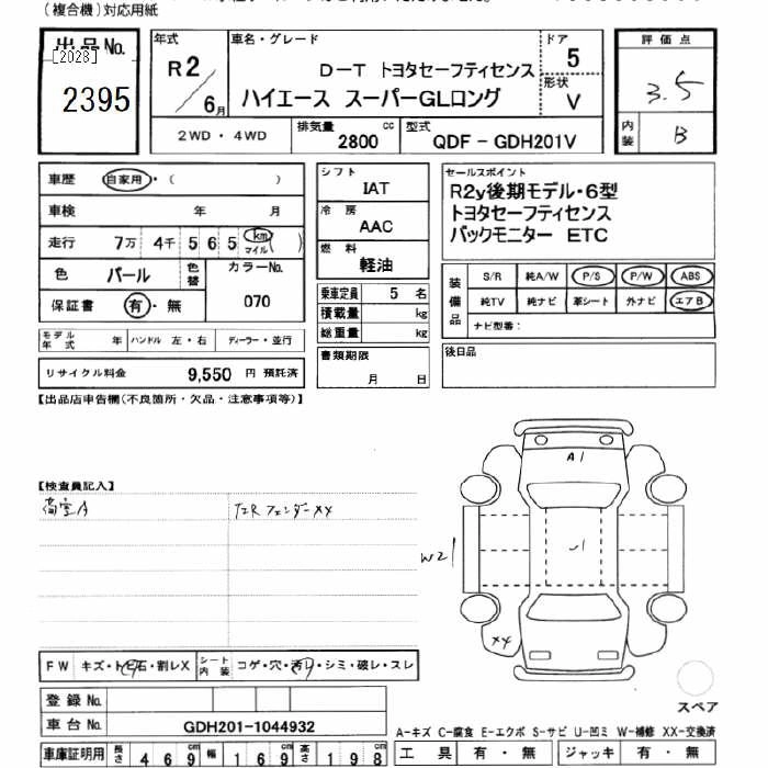 TOYOTA HIACE 2020 г., лот № 2395