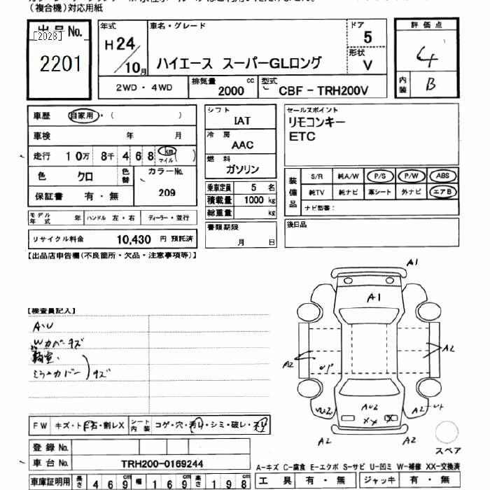 TOYOTA HIACE 2012 г., лот № 2201