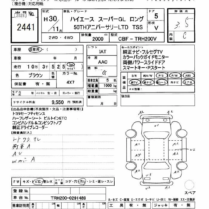 TOYOTA HIACE 2018 г., лот № 2441