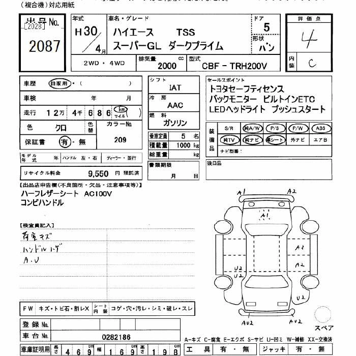 TOYOTA HIACE 2018 г., лот № 2087