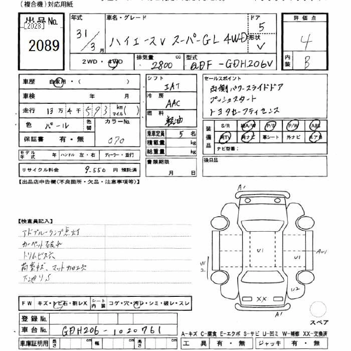 TOYOTA HIACE 2019 г., лот № 2089