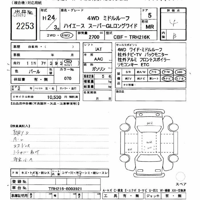 117 000 км КузовTRH216K Комплектация4WD SUPER GL LONG WIDE MIDDLE-ROOF