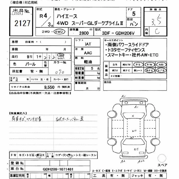 TOYOTA HIACE 2022 г., лот № 2127