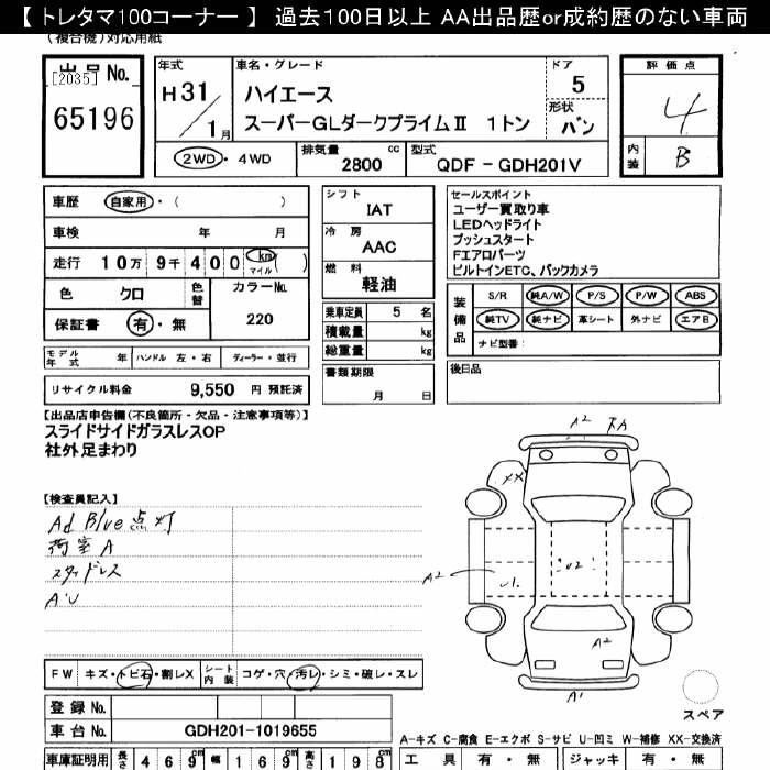 TOYOTA HIACE 2019 г., лот № 65196