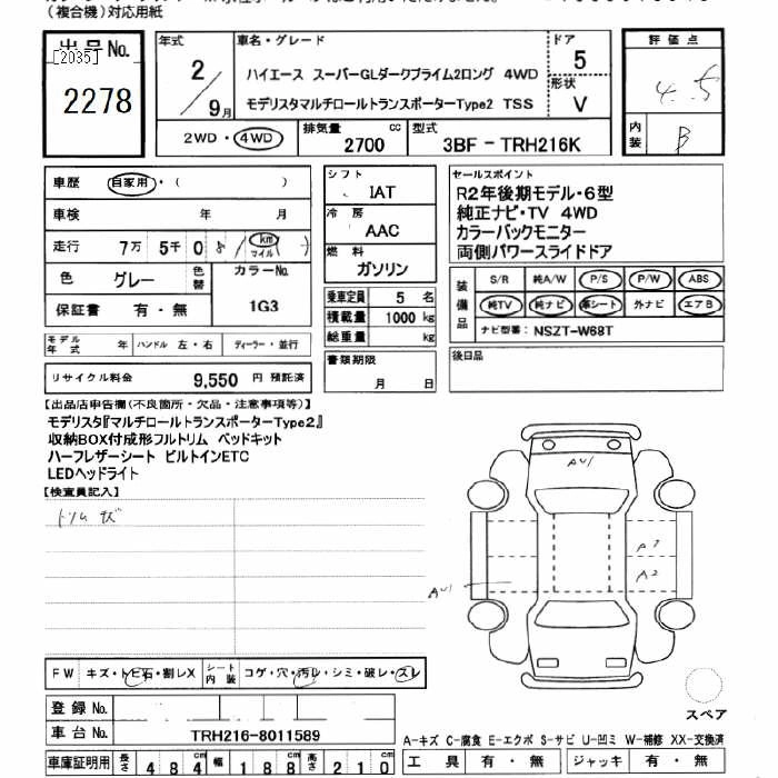TOYOTA HIACE 2020 г., лот № 2278