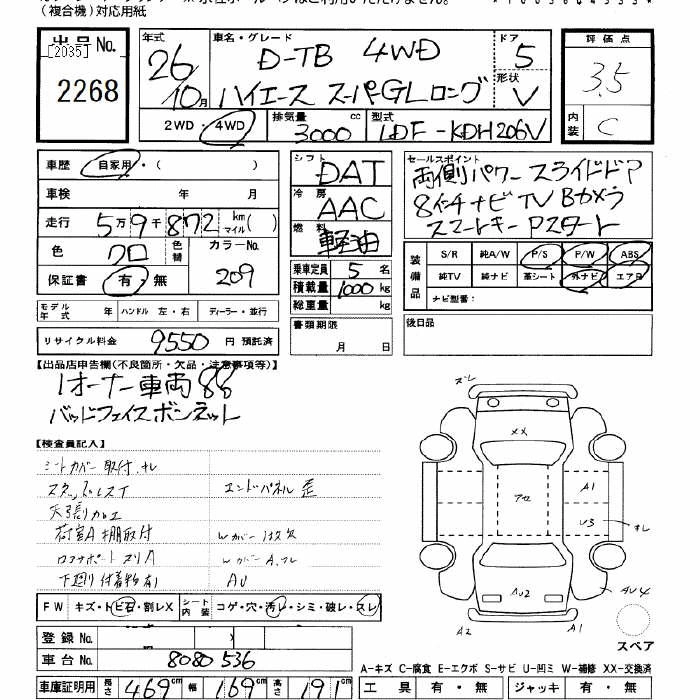 Год выпуска2014 Пробег 59 000 км КузовKDH206V Комплектация4WD SUPER GL LONG D-TB