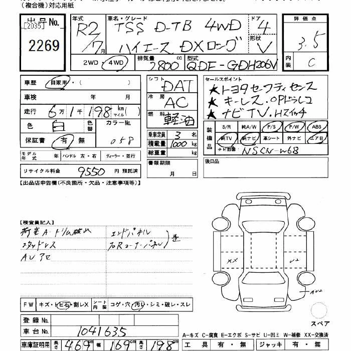 Год выпуска2020 Пробег 61 000 км КузовGDH206V Комплектация4WD DX LONG D-TB TSS