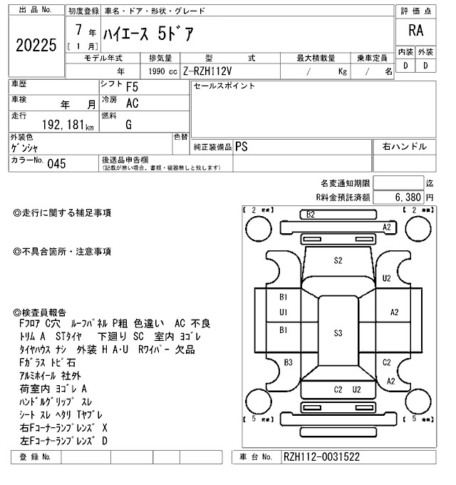 TOYOTA HIACE 1995 г., лот № 20225