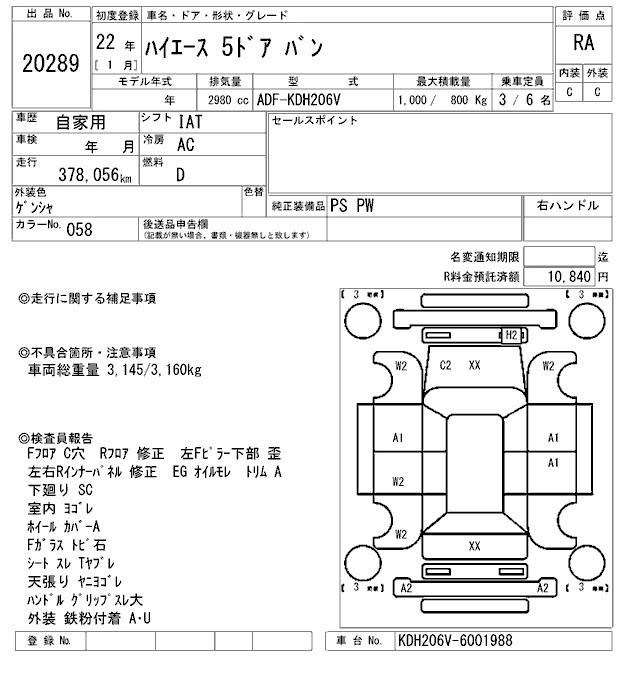 TOYOTA HIACE 2010 г., лот № 20289