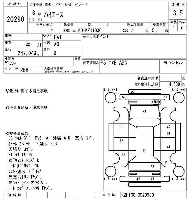 TOYOTA HIACE 1996 г., лот № 20290