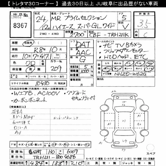 Год выпуска2012 Пробег 107 000 км КузовTRH211K Комплектация SUPER GL WIDE MR PRIME SELECTION