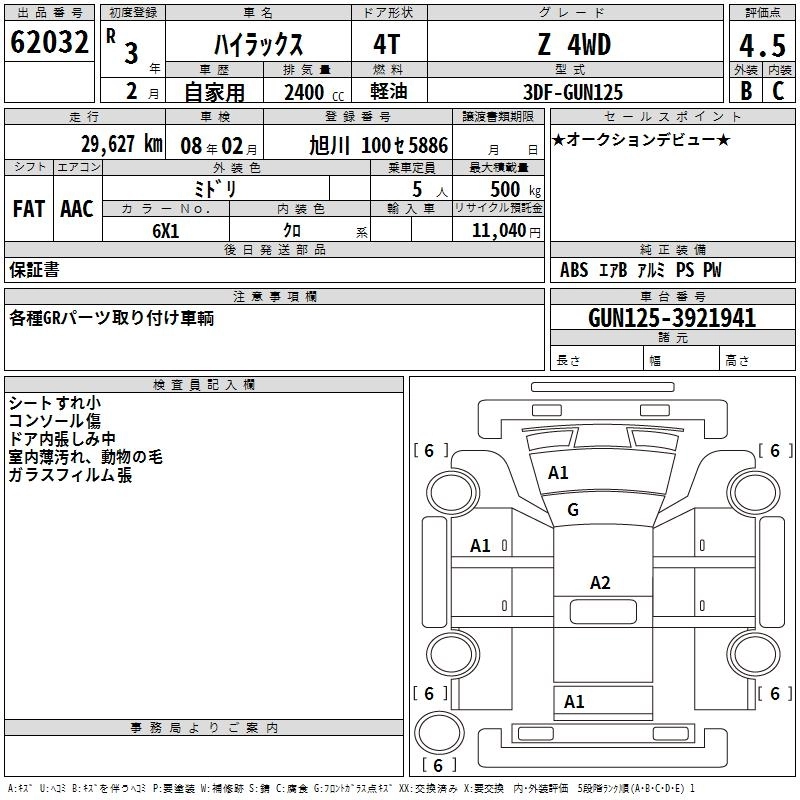 Статус выставлен на аукцион Лот 62032 Аукцион TAA Hokkaido Дата аукциона 11.12.2025