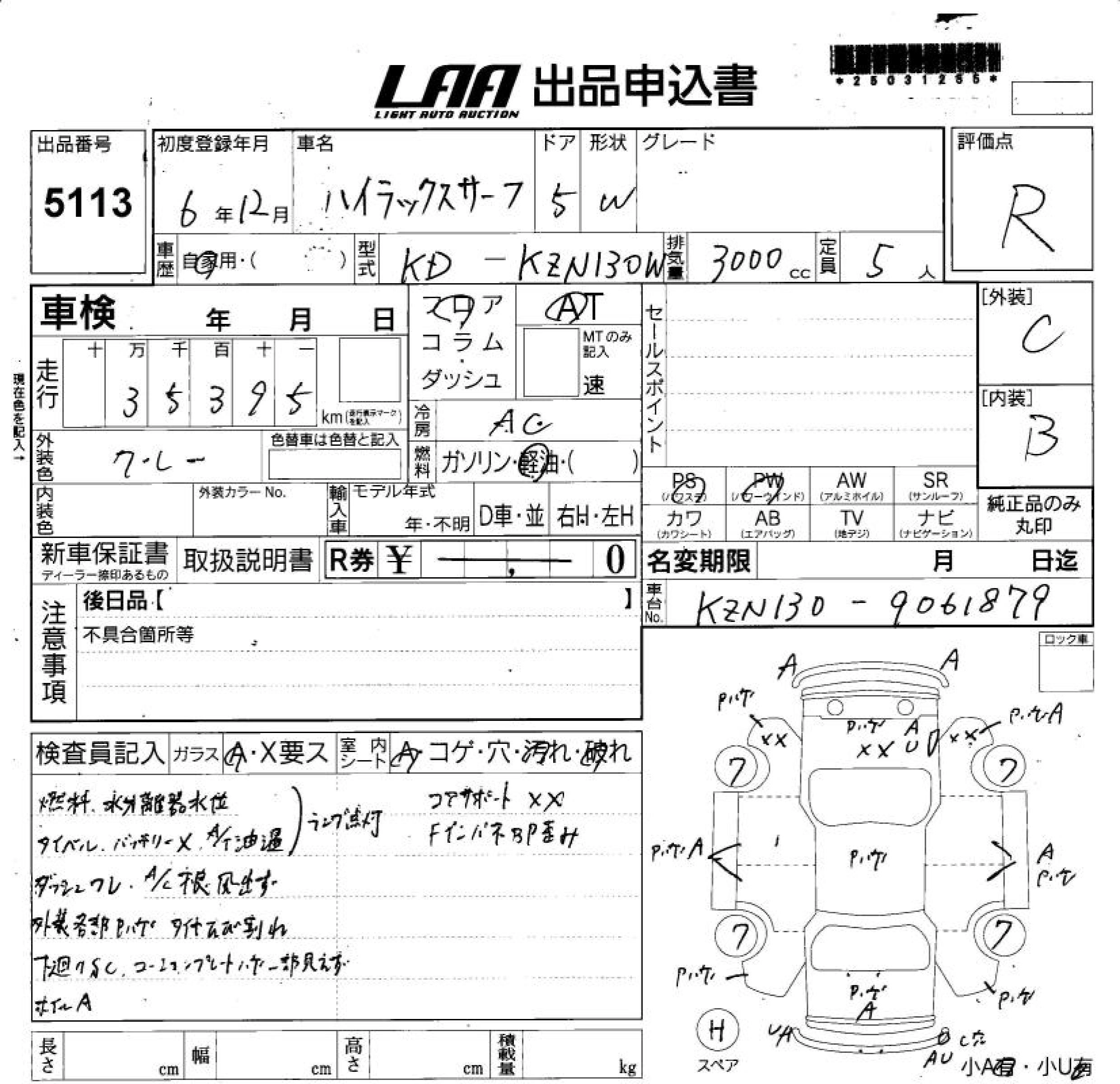 TOYOTA HILUX SURF 1994 г., лот № 5113