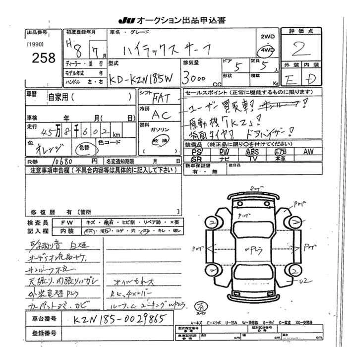 Год выпуска1996 Пробег 459 000 км КузовKD-KZN185W Комплектация4WD