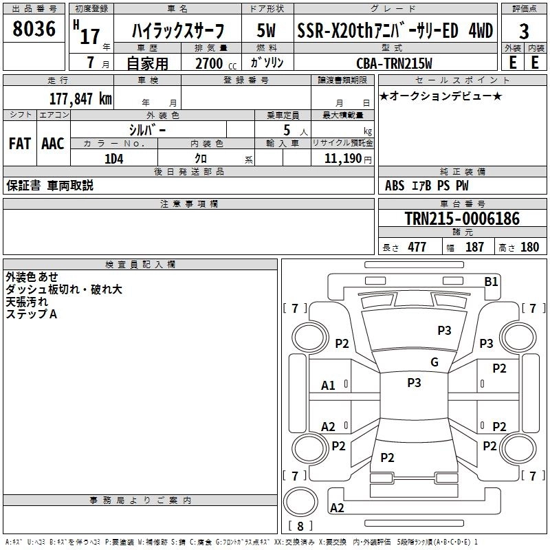 Статус выставлен на аукцион Лот 8036 Аукцион TAA Chubu Дата аукциона 12.03.2026