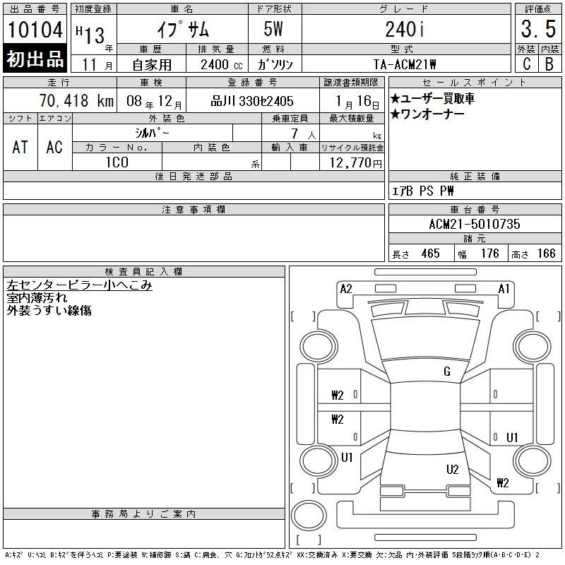 TOYOTA IPSUM 2001 г., лот № 10104