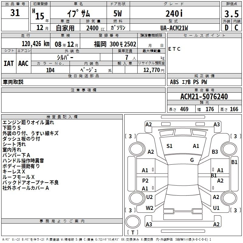 TOYOTA IPSUM 2003 г., лот № 31