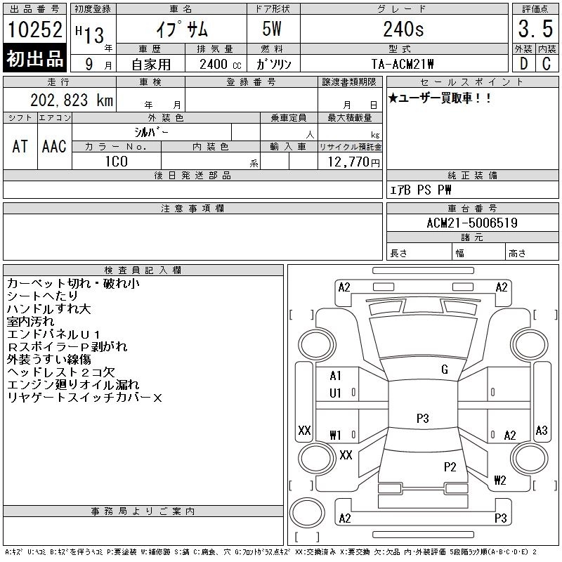 Год выпуска2001 Пробег 203 000 км КузовACM21W Комплектация240s