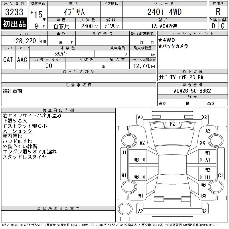 TOYOTA IPSUM 2003 г., лот № 3233