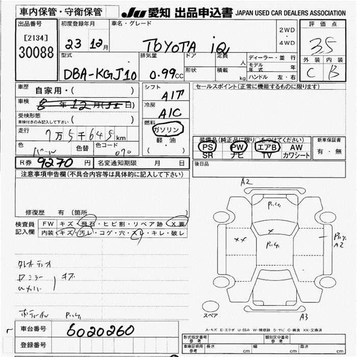 TOYOTA IQ 2011 г., лот № 30088