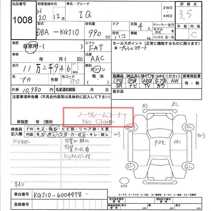 TOYOTA IQ 2008 г., лот № 1008