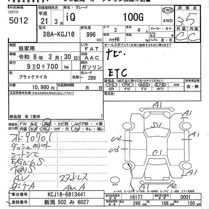 TOYOTA IQ 2009 г., лот № 5012