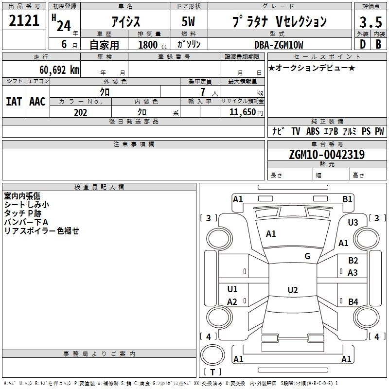Год выпуска2012 Пробег 61 000 км КузовZGM10W Комплектация PLATANA V SELECTION