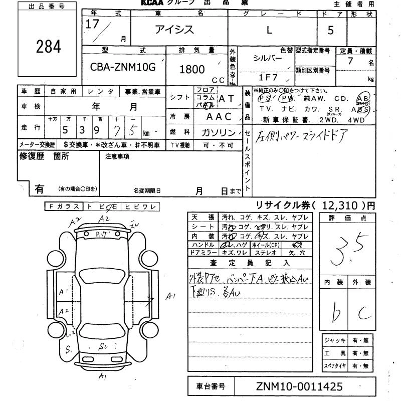 TOYOTA ISIS 2005 г., лот № 284