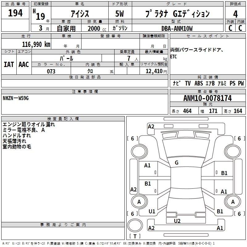 Год выпуска2007 Пробег 117 000 км КузовANM10W Комплектация PLATANA G EDITION