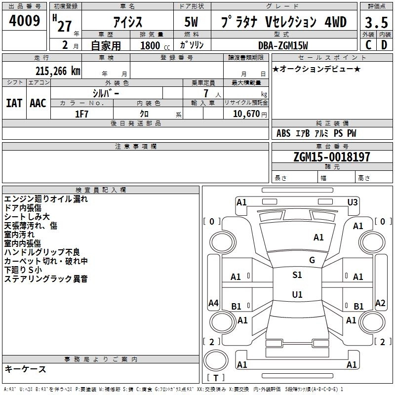 Год выпуска2015 Пробег 215 000 км КузовZGM15W Комплектация PLATANA V SELECTION 4WD