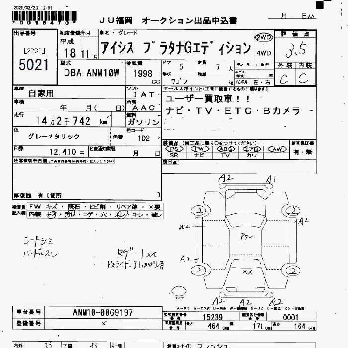Статус не продан Лот 5021 Аукцион JU Fukuoka Дата аукциона 23.01.2026