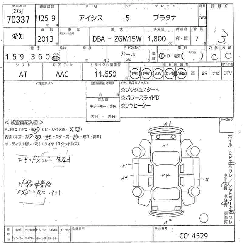 Год выпуска2013 Пробег 159 000 км КузовZGM15W Комплектация PLATANA