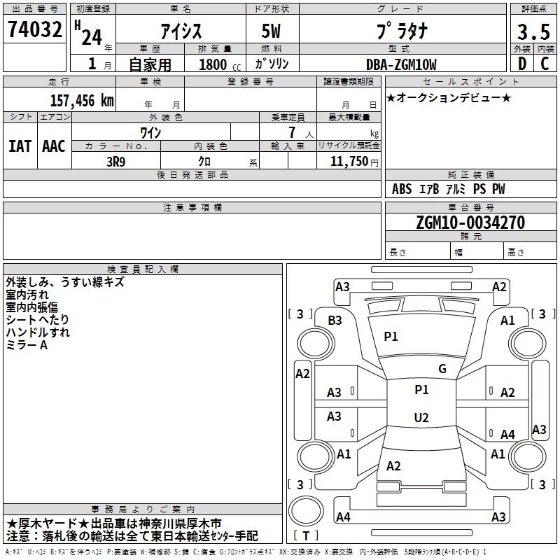 Год выпуска2012 Пробег 157 000 км КузовZGM10W Комплектация PLATANA