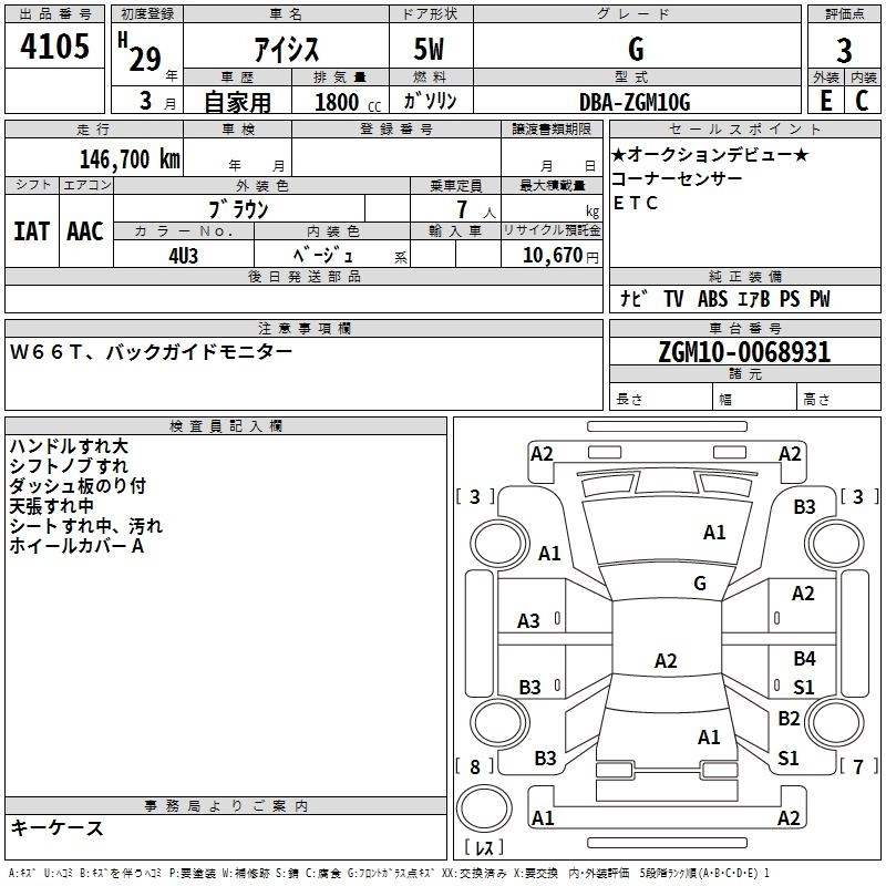 TOYOTA ISIS 2017 г., лот № 4105